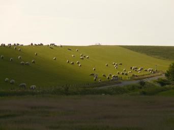 Keywords: dike north sea nordfriesland sheep grass pasture landscape idyll