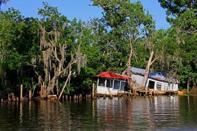 Keywords: diladitated camp river swamp hurricane destroyed house ruin storm broken water bayou