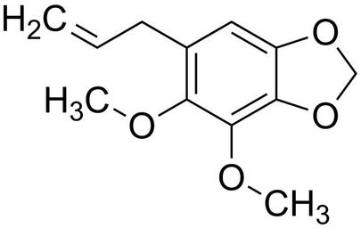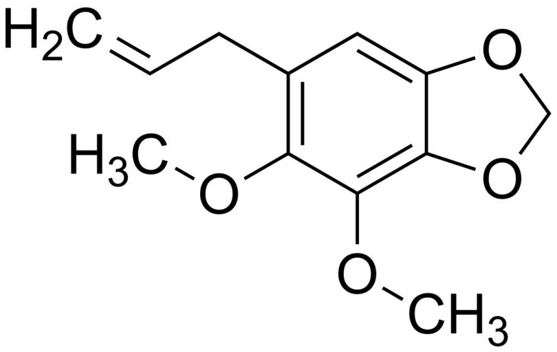 | Keywords: Dillapiole 200.svg validSVG Structure of 6-allyl-4 5-dimethoxybenzod1 3dioxole Struktur von 6-Allyl-4 5-dimethoxybenzod1 3dioxol Own 2014-04-11 Emeldir <span class signature-talk >talk</span> Chemical structure verified https //upload wikimedia org/wikipedia/commons/f/f3/Dillapiole_200 svg 1S/C12H14O4/c1-4-5-8-6-9-11 16-7-15-9 12 14-3 10 8 13-2/h4 6H 1 5 7H2 2-3H3 LIKYNOPXHGPMIH-UHFFFAOYSA-N 484-31-1 Synonyms <small>4 5-dimethoxy-6-prop-2-enyl-1 3-benzodioxole 6-Allyl-4 5-dimethoxy-1 3-benzodioxole Apiole Dill Dillapiol Dillapiole</small> PD-chem Benzodioxoles Dimethoxybenzenes Allylbenzenes Phenylpropanoids |