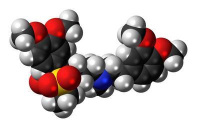 | Keywords: Dimeditiapramine 3D spacefill.png Space-filling model of the dimeditiapramine molecule a calcium channel blocker Colour code 505050 Carbon C black<br> F0F0F0 Hydrogen H white<br> F51E1E Oxygen O red<br> 3C50FA Nitrogen N blue<br> FAEB00 Sulfur S yellow<br> 2011-06-25 own DS Visualizer Jynto talk Ball-and-stick version cc-zero Cyclic sulfones dimethoxybenzenes tertiary amines Images by Jynto Space-filling models | ||||
