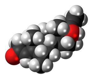 | Keywords: Dimethisterone 3D spacefill.png Space-filling model of the dimethisterone molecule Colour code 505050 Carbon C black<br> F0F0F0 Hydrogen H white<br> F51E1E Oxygen O red<br> 2011-07-15 own DS Visualizer Jynto talk Ball-and-stick version Skeletal stick version cc-zero Images by Jynto 3-Oxo-steroids Space-filling models Alkyne derivatives enones |