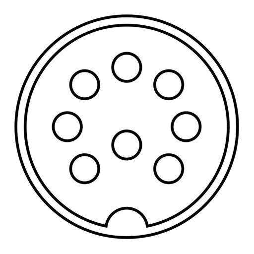 Keywords: DIN-8 Diagram.svg A diagram of the 8 pin DIN connector 2006-06-01 own assumed Mobius DIN connector symbols