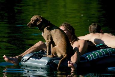 Keywords: dinghy dog human water bathers