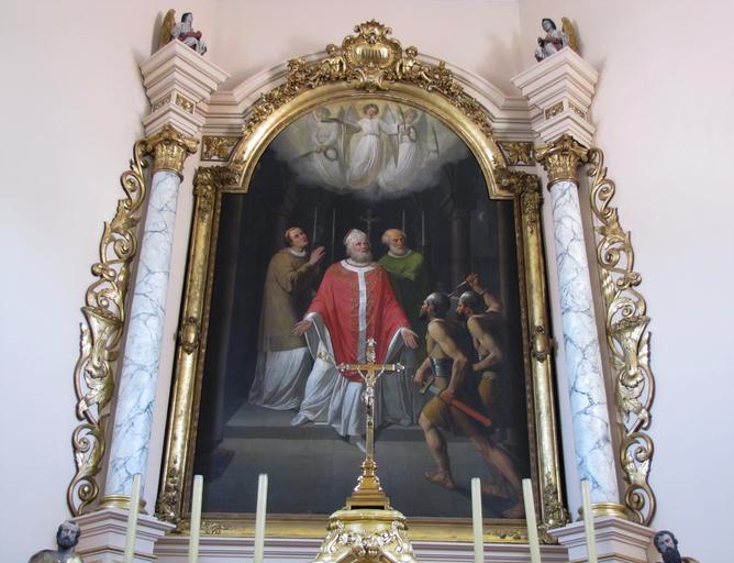 | Keywords: Dingsheim StKilian 11.JPG Alsace Bas-Rhin Dingsheim Eglise St Kilian Maître-autel XIXe et tableau St Kilian 1861 own 2012 Ralph Hammann cc-by-sa-3 0 IM67010141 IM67009472 Artwork / Œuvre d'art / Kunstwerk Artwork Louis SORG 1823-1863 Creator Louis Sorg Saint Kilian en évêque et ses compagnons Kalamon et Tetnan vont être agressés devant un autel par deux soldats armés 1861 oil canvas 340 cm de large Eglise Saint-Kilian Dingsheim Maître-autel IM67009465 object history other versions Ralph Hammann PD-old-100 accession number Altars in Église Saint-Kilian de Dingsheim Photographs of Dingsheim by Ralph Hammann Taken with Canon PowerShot SX20 IS Church paintings in Bas-Rhin Paintings of Christian saints in France Saint Kilian Louis Sorg 19th-century church paintings in Alsace 1861 paintings in France 1861 works in Alsace Altar pieces in Bas-Rhin Dingsheim |