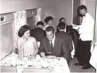 | Keywords: archives state records nsw staterecordsnsw newsouthwales blackandwhite trains carriages dining car diningcar southern aurora southernaurora people passengers women leisure staff waiters srnsw:series=17420 fashion clothing uniforms black and white Interior of railway carriage showing dining car on the 'Southern Aurora' Dated: 1962 Digital ID: a014_a014000878 Rights: www.records.nsw.gov.au/about-us/rights-and-permissions We'd love to hear from you if you use our photos. Many other photos in our collection are available to view and browse on our website using Photo Investigator. The Heritage Express website offers nostalgic rail travel in style on board the Southern Aurora. Interior of railway carriage showing dining car on the 'Southern Aurora' Dated: 1962 Digital ID: a014_a014000878 Rights: www.records.nsw.gov.au/about-us/rights-and-permissions We'd love to hear from you if you use our photos. Many other photos in our collection are available to view and browse on our website using Photo Investigator. The Heritage Express website offers nostalgic rail travel in style on board the Southern Aurora. |