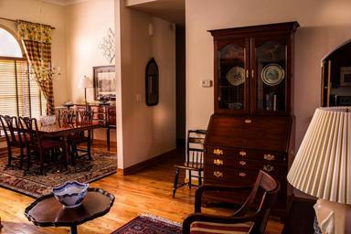 Keywords: dining room table chairs secretary tea table great room hitchcock chair window curtains mirror hardwood floor carpet buffet sideboard