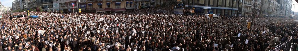 | Keywords: Dinkfuneral2.jpg A striking image from recently assassinated Armenian-Turkish journalist en Hrant Dink's funeral Over 100 000 protesters walked against the ultra-nationalist ideas that killed him carrying placards reading We are all Hrant Dink and We are all Armenians in Turkish Armenian and Kurdish The picture dramatically covers the crowd overflowing from the Halaskargazi Boulevard The Building towards the left with the black banner is the office of the Agos newspaper where Dink was Gunned down A little bonus in the picture is the appearance of en Murat Belge a famous Turkish journalist towards the middle Straight down from the red light with 1 second remaining He is the one with white beard en wikipedia 2007-01-23 Ombudsee wikipedia en Ombudsee original upload log page en wikipedia Dinkfuneral2 jpg 2007-01-30 22 17 Ombudsee 4600×789×8 1142089 bytes <nowiki>Cropped it from the right </nowiki> 2007-01-24 09 15 Ombudsee 4800×789×8 1165033 bytes <nowiki>Hrant Dink's Funeral A panoramic image of Halaskargazi Boulevard Around Hundred Thousand Attended to funeral This version is a little bit better manipulated version of the last </nowiki> 2007-01-23 16 16 Ombudsee 4800×789×8 1165145 bytes <nowiki>Did a little manipulation</nowiki> 2007-01-23 12 13 Ombudsee 4800×845×8 1200065 bytes <nowiki>Hrant Dink's Funeral</nowiki> Funeral of Hrant Dink ImageNote 1 2994 449 52 69 4600 789 2 en Murat Belge ImageNoteEnd 1 ImageNote 2 1117 576 98 121 4600 789 2 double ImageNoteEnd 2 ImageNote 3 944 518 98 121 4600 789 2 double ImageNoteEnd 3 ImageNote 4 1773 530 81 92 4600 789 2 double ImageNoteEnd 4 ImageNote 5 1624 513 86 104 4600 789 2 double ImageNoteEnd 5 ImageNote 6 2372 708 207 75 4600 789 2 doubles ImageNoteEnd 6 |