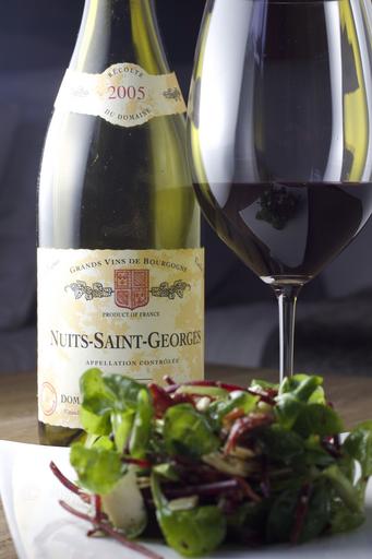 Keywords: dinner salad wine glass bottle food meal gourmet red