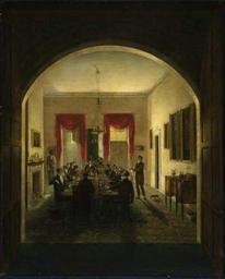 | Keywords: DinnerParty ca1821 byHenrySargent MFABoston.jpeg The Dinner Party about 1821 By Henry Sargent American 1770 “1845 156 53 x 126 36 cm 61 5/8 x 49 3/4 in Oil on canvas Museum of Fine Arts Boston Museum of Fine Arts Boston ca 1821 Creator Henry Sargent Henry Sargent Boston in the 1820s PD-Art |