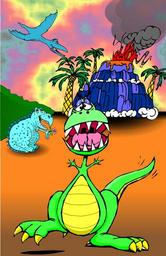 Keywords: dinosaurs volcano kids poster fun clip art drawing cartoon character childhood amusing funny humor humorous cheerful artistic play children child happy smiling male cute