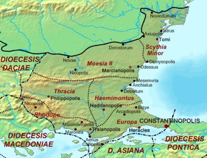 | Keywords: Dioecesis Thraciae 400 AD.png Map of the Diocese of Thrace Dioecesis Thraciae ca 400 AD showing the subordinate provinces and the major cities Base map found at en Topographic map Global 1-kilometer map otherwise self-made Data based on maps in atlases and the internet and on contemporary sources primarily the Notitia Dignitatum <br>Note The exact course of the provincial boundaries is very uncertain and in many cases only approximate 2007-10-02 Cplakidas Maps of Roman provinces Maps of Byzantine provinces Maps of the history of Bulgaria in ancient times Maps of ancient Thrace Maps of the history of Romania in ancient times Maps of Dacia 400s Tomis Histria ancient city Romania in the 3rd century 400 in Romania Roman Thrace |
