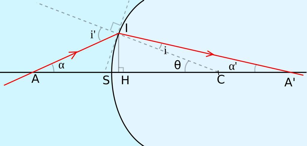 Keywords: Dioptre spherique.svg Schéma d'un dioptre sphérique avec quelques notations Refraction by spherical surfaces 2006-12-19 own assumed Fffred~commonswiki