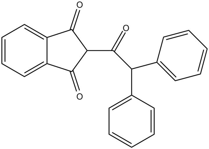Keywords: Diphenadione.png This is the structure of Diphenadione drawn with ChemDraw own transferred from http //en wikipedia org/wiki/File Diphenadione png 2007-08-31 Jeff Dahl Jeff Dahl PD-ineligible Indandiones Ketones Diphenylmethanes