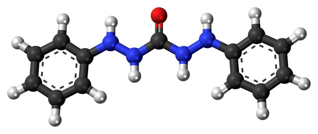 | Keywords: Diphenylcarbazide 3D ball.png Ball-and-stick model of the Diphenylcarbazide molecule Colour code 505050 Carbon C black<br> F0F0F0 Hydrogen H white<br> F51E1E Oxygen O red<br> 3C50FA Nitrogen N blue<br> 2011-06-25 own DS Visualizer Jynto talk Space-filling version cc-zero carbamides hydrazides Un-N-substituted anilides Images by Jynto Ball-and-stick models |