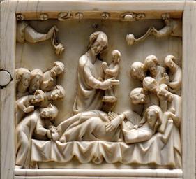 | Keywords: Diptych leaf Dormition Louvre OA9330.jpg The Dormition of Mary detail from a diptych leaf Ivory Northern France 13th century Dormition de la Vierge détail d'un feuillet de diptyque Ivoire Nord de la France XIIIe siècle Museum Louvre Department of Decorative Arts Richelieu first floor room 3 case 2 object history credit line Gift of Henry de Nanteuil de la Norville 1941 accession number OA 9330 Jastrow 2007 other versions Reliefs of the Dormition of Virgin Mary in France Medieval ivory Decorative arts in the Louvre - Room 3 Medieval ivories in the Louvre |