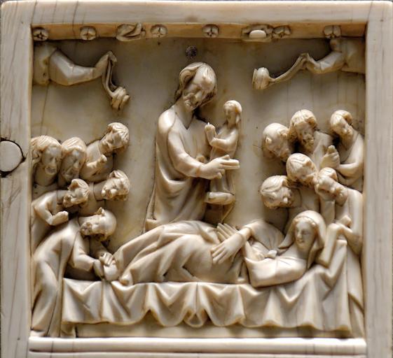 | Keywords: Diptych leaf Dormition Louvre OA9330.jpg  The Dormition of Mary detail from a diptych leaf Ivory Northern France 13th century Dormition de la Vierge détail d'un feuillet de diptyque Ivoire Nord de la France XIIIe siècle Museum Louvre Department of Decorative Arts Richelieu first floor room 3 case 2 object history credit line Gift of Henry de Nanteuil de la Norville 1941 accession number OA 9330 Jastrow 2007 other versions Reliefs of the Dormition of Virgin Mary in France Medieval ivory Decorative arts in the Louvre - Room 3 Medieval ivories in the Louvre |