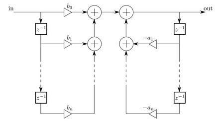 Keywords: Directform1.svg en Direct Form I implementation of an IIR filter Own OrangeDog 2008-01-29 File IIR Filter Direct Form 1 svg IIR filters