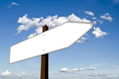 Keywords: directory signposts shield signs direction right next way marking empty enter label arrow opposed to contrast contradictory different sky clouds