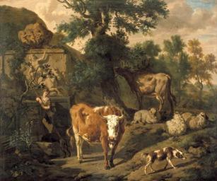 | Keywords: Dirk van Bergen - Rustende vee bij een graftombe NK2645.jpg Artwork Q23898578 en Resting Cattle by a Grave monument 1670-1689 oil on canvas 80 x 66 5 cm RCE NK2645 http //www digitalecollectienederland nl/dimcon/rce-kunstcollectie/d8cd10c7-168d-4b6d-be58-1bb930ee3880 http //www dcn-images nl/img/NK2645 jpg image Creator Dirk van Bergen formerly in the collection of Jan Jansz Gildemeester PD-Art-100 other versions Dirck van Bergen The Art Gallery of Jan Gildemeester Jansz Collection Jan Jansz Gildemeester |