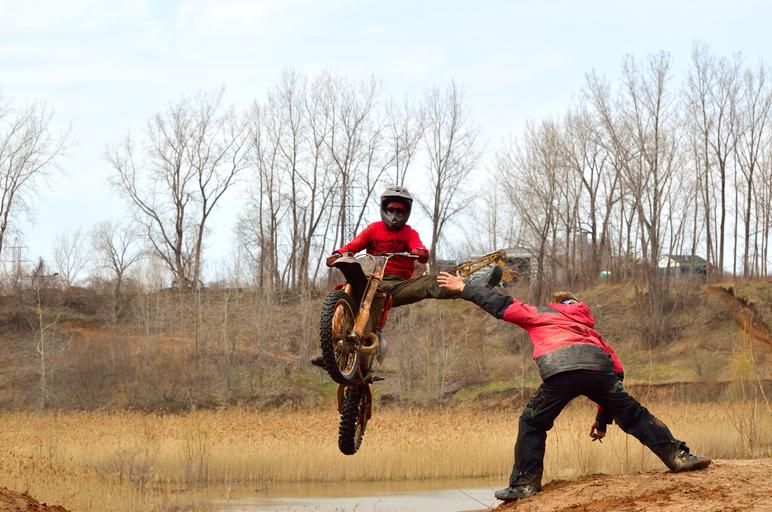 Keywords: dirt bike motorcycle mud dangerous action jump