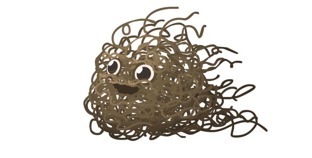 Keywords: dirt mess messy grungy face cartoon brown yarn dirty