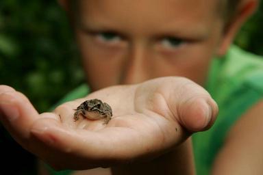 Keywords: discovered he frog holds boy kids children people