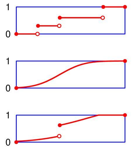 | Keywords: Discrete probability distribution illustration.png 2px 3 valign center There are SVG versions 392px Discrete distribution - 392px Normal distribution - 392px Mixed distribution From top to bottom the cumulative distribution function of a discrete probability distribution continuous probability distribution and a distribution which has both a continuous part and a discrete part Cumulative distribution functions are examples of càdlàg functions Fonctions de répartition d'une variable discrète d'une variable diffuse et d'une variable avec atome mais non discrète בשרטוט הע יון מוצגת פונקציית ההצטברות ש ההתפ גות הבדידה ש ה ש ושה ערכי אפשריי 1 3 ו- 7 בהסתברות 0 2 0 5 ו-0 3 בהתאמה השרטוט האמצעי מציג את פונקציית ההצטברות ש התפ גות רציפה עובדה שניתן הסיק בש רציפות הפונקציה ע כ הטווח 0 1 השרטוט התחתון מציג פונקציית הצטברות ש התפ גות שהינה רציפה בח קה ובדידה בח קה Az eloszlásfüggvények például càdlàg függvények Le funzioni di ripartizione sono un esempio di funzioni càdlàg 上から順に 離散確率分布 続確率分布 続部分と離散部分がある確率分布の累積分布関数 산 확률 분포 연속 확률 분포 산적 분과 연속적 분 모두 존재하는 분포에 각각 누적 분포 함수 Od góry dystrybuanta pewnego dyskretnego rozkładu rozkładu ciagłego oraz rozkładu mającego zarówno ciągłą jak i dyskretną część Одозго на доле функција асподеле диск етне случајне п оменљиве неп екидне случајне п оменљиве и случајне п оменљиве која има и неп екидне и диск етне делове From top to bottom the cumulative distribution function of a discrete probability distribution continuous probability distribution and a distribution which has both a continuous part and a discrete part Yukarıdan aşağıya doğru bir ayrık olasılık dağılımı için bir sürekli olasılık dağılımı için ve hem sürekli hem de ayrık kısımları bulunan bir olasılık dağılımı için yığmalı olasılık fonksiyonu sten alta doğru Bir aralıklı dağılım için bir sürekli dağılım için ve hem sürekli bir kısmı hem de aralıklı bir kısmı bulunan bir dağılım için yığmalı dağılım fonksiyonları Зве ху вниз функція озподілу для диск етного озподілу ймові ностей для непе е вного озподілу та для озподілу що містить диск етну та непе е вну частини Từ trên xuống dưới hàm phân phối tích tũy của một phân phối xác suất r i rạc phân phối xác suất liên tục và một phân phối có cả một phần liên tục và một phần r i rạc Hàm phân bố tích lũy là một ví dụ của hàm số càdlàg own Oleg Alexandrov other versions see above and below Created with MATLAB Discrete_probability_distribution_illustration svg Source code MATLAB <source lang Matlab > plot a the cummulative distribution function for a a discrete distribution b continuous distribtuion c a distribution which has both a discrete and a continuous part function main clf; hold on; axis equal; axis off; L 4; h 0 02; X 0 h L; shift 2; Y 0 find X < 0 2 L 0 3+0 find X > 0 2 L X < 0 4 L 0 6+0 find X > 0 4 L X < 0 8 L 1+0 find X> 0 8 L ; plot_graph X Y L 0 shift Y 0 5 erf 4/L X-L/2 5 +0 5; plot_graph X Y L shift ; ds 0 4; Y 0 5 erf 2/L X-L/1 5 +0 5; Y Y + 0 find X < ds L 0 4+0 find X > ds L ; Y min Y 1 ; plot_graph X Y L 2 shift ; plot two dummy points to make matlab expand a bit the window before saving plot L+0 15 1 1 ' ' 'color' 0 99 1 1 1 ; plot -0 5 -2 1 shift ' ' 'color' 0 99 1 1 1 ; save as eps saveas gcf 'Discrete_probability_distribution_illustration eps' 'psc2' function plot_graph X Y L shift settings N length X ; tol 0 1; thick_line 3; thin_line 2; small_rad 0 07; red 1 0 0; blue 0 0 1; fs 23; epsilon 0 01; plot a blue box plot 0 L L 0 0 0 0 1 1 0-shift 'linewidth' thin_line 'color' blue everything will be shifted down Y Y - shift; if the given funtion has a jump plot some balls Otherwise plot a continous segment for i 1 N-1 if abs Y i -Y i+1 > tol ball X i+1 Y i+1 small_rad red ; empty_ball X i Y i thin_line 0 9 small_rad red ; else plot X i -epsilon X i+1 +epsilon Y i Y i+1 'color' red 'linewidth' thick_line ; end end ball 0 -shift small_rad red ; ball L 1-shift small_rad red ; plot text small 0 4; text -small 0-shift '0' 'fontsize' fs text -small 1-shift '1' 'fontsize' fs function ball x y r color Theta 0 0 1 2 pi; X r cos Theta +x; Y r sin Theta +y; H fill X Y color ; set H 'EdgeColor' 'none' ; function empty_ball x y thick_line r color Theta 0 0 1 2 pi; X r cos Theta +x; Y r sin Theta +y; H fill X Y 1 1 1 ; plot X Y 'color' color 'linewidth' thick_line ; </source> Discrete probability theory Files by User Oleg Alexandrov from en wikipedia Images with Matlab source code Cumulative distribution functions |