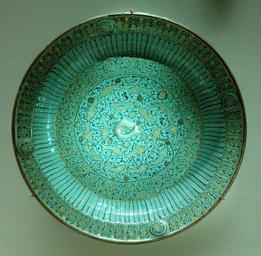 | Keywords: Dish fish Louvre OA6456.jpg Dish with fish of the ladjvardina cobalt type Earthenware with stain and gilded decoration coloured opacified glaze overglaze painted Iran late 13th century-early 14th century Plat à la ronde de poissons du type ladjvardina « cobalt » Céramique siliceuse à décor de petit feu et doré sur glaçure opacifiée colorée Iran fin du XIIIe siècle début du XIVe siècle Museum Louvre Department of Islamic Art Richelieu lower ground floor room 10 object history credit line Purchase 1911 accession number OA 6456 Jastrow 2006 other versions Ceramics of Iran in the Louvre Ceramic plates Fish in pottery Shapes resembling number 0 |