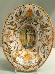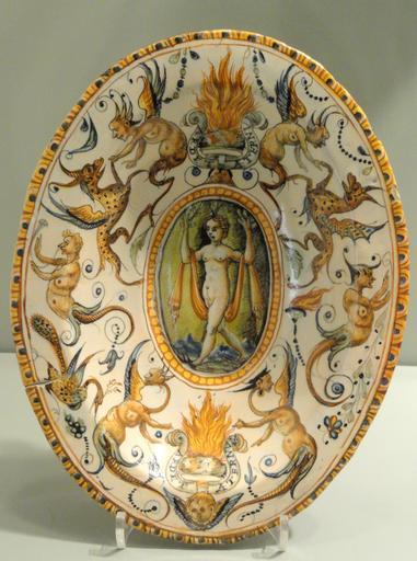 | Keywords: Dish from the service of Alfonso Il d'Este, 1579 or later, Urbino, probably from the Patanazzi workshop, tin-glazed earthenware (maiolica) - Gardiner Museum, Toronto - DSC01275.JPG Exhibit in the Gardiner Museum Toronto Ontario Canada This artwork is in the public domain because the artist died more than 70 years ago Photography was permitted in the museum without restriction Daderot 2012-10-16 16 59 27 Daderot cc0 cc0 Italian maiolica in the Gardiner Museum Alfonso II d'Este Patanazzi workshop |