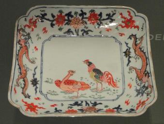 | Keywords: Dish with Rooster Design, c. 1720, Jingdezhen, China, hard-paste porcelain with overglaze enamels - Gardiner Museum, Toronto - DSC00624.JPG Exhibit in the Gardiner Museum Toronto Ontario Canada This artwork is in the public domain because the artist died more than 70 years ago Photography was permitted in the museum without restriction Daderot 2012-10-16 14 42 51 Daderot cc0 cc0 Jingdezhen porcelain in the Gardiner Museum | ||||
