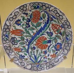 | Keywords: Dish with saz leaf design, Turkey, Iznik, c. 1575, underglaze-painted stonepaste - Royal Ontario Museum - DSC04737.JPG en Exhibit in the Royal Ontario Museum Toronto Ontario Canada This work is old enough so that it is in the public domain Photography was permitted in the museum without restriction 2013-10-08 17 15 50 own Daderot cc-zero Uploaded with UploadWizard İznik ceramics in the Royal Ontario Museum | ||||