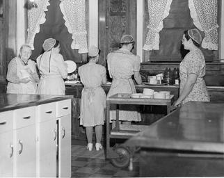 | Keywords: grace cable gracecable rosie benish rosiebenish miller esther ulrich estherulrich dorothy harshberger dorothyharshberger kitchen dish washing dishwashing mennonite board of missions maple lawn homes home for the aged eureka illinois voluntary service mennonite voluntary service elderly nursing homes mennoniteboardofmissionsmaplelawnhomeshomefortheagedeurekaillinoisvoluntaryservicemennonitevoluntaryserviceelderlynursinghomes blackandwhite monochrome black and white Caption: December 13, 1951. Dishwashing: l to r: Mrs. Miller (member), Grace Cable, Rosie Benish (Member), Esther Ulrich, Dorothy Harshberger. Citation: Mennonite Board of Missions. Photographs. Illinois, Eureka, Home for the Aged, 1950-1956. IV-10-7.2 Box 3 Folder 72. Mennonite Church USA Archives - Goshen. Goshen, Indiana. Caption: December 13, 1951. Dishwashing: l to r: Mrs. Miller (member), Grace Cable, Rosie Benish (Member), Esther Ulrich, Dorothy Harshberger. Citation: Mennonite Board of Missions. Photographs. Illinois, Eureka, Home for the Aged, 1950-1956. IV-10-7.2 Box 3 Folder 72. Mennonite Church USA Archives - Goshen. Goshen, Indiana. |