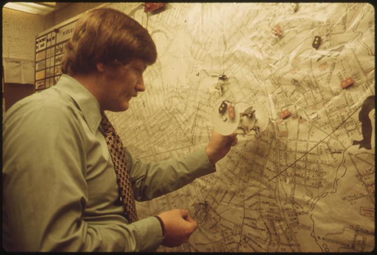 | Keywords: DISPATCHER MARKS LOCATIONS ON A CITY MAP FOR THE DIAL A RIDE RADIO DISPATCHED DOOR-TO-DOOR BUS SYSTEM IN HADDONFIELD... - NARA - 556755.tif Scope and content General notes 556755 Local identifier 412-DA-14303 Environmental Protection Agency 12/02/1970 - NARA-Author Pickerell Jim 1936- Photographer 4588217 <br /> Haddonfield Camden county New Jersey United States North and Central America inhabited place 3354430 39 883 -75 033 <br /> Still Picture Records Section Special Media Archives Services Division NWCS-S National Archives at College Park 8601 Adelphi Road College Park MD 20740-6001 05/1974 Record group Record Group 412 Records of the Environmental Protection Agency 1944 - 2006 Record group ARC 708 DOCUMERICA The Environmental Protection Agency's Program to Photographically Document Subjects of Environmental Concern compiled 1972 - 1977 Series ARC 542493 File unit File unit ARC Variant control numbers Agency-Assigned Identifier 239/23/014303<br /> NAIL Control Number NWDNS-412-DA-14303 yes Other versions <gallery> File DISPATCHER_MARKS_LOCATIONS_ON_A_CITY_MAP_FOR_THE_DIAL_A_RIDE_RADIO_DISPATCHED_DOOR-TO-DOOR_BUS_SYSTEM_IN_HADDONFIELD _-_NARA_-_556755 tif tif File DISPATCHER_MARKS_LOCATIONS_ON_A_CITY_MAP_FOR_THE_DIAL_A_RIDE_RADIO_DISPATCHED_DOOR-TO-DOOR_BUS_SYSTEM_IN_HADDONFIELD _-_NARA_-_556755 jpg jpg </gallery> NARA-cooperation PD-USGov NARA TIF images with categorized JPGs |