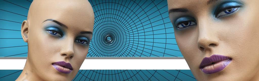 Keywords: display dummy banner header face woman portrait head psyche bald head fashionable