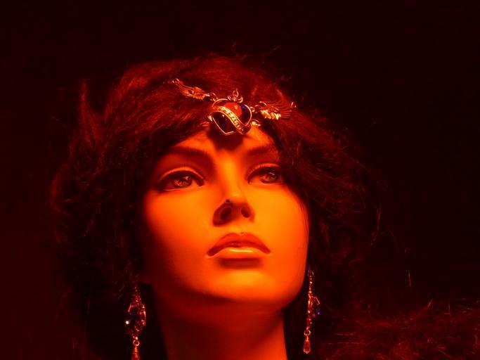 Keywords: display dummy woman doll head face fashion decoration portät jewellery diadem earrings view to watch direct