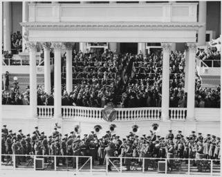 | Keywords: Distance view of the inauguration of President Truman showing the President walking to his seat. - NARA - 199983.tif Scope and content General notes 199983 Local identifier National Archives and Records Administration Office of Presidential Libraries Harry S Truman Library 04/01/1985 - Creator Abbie Rowe Harry S Truman Library NLHST 500 West U S Highway 24 Independence MO 64050-1798 1949-01-20 Record group Collection HST-AVC Audiovisual Collection 1957 - 2006 Record group ARC 1207 Photographs Relating to the Administration Family and Personal Life of Harry S Truman compiled 1957 - 2004 documenting the period 1849 - 2004 Series ARC 198606 File unit File unit ARC Variant control numbers NAIL Control Number NLT-AVC-PHT-73 2825 yes Other versions <gallery> File Distance_view_of_the_inauguration_of_President_Truman_showing_the_President_walking_to_his_seat _-_NARA_-_199983 tif tif File Distance_view_of_the_inauguration_of_President_Truman_showing_the_President_walking_to_his_seat _-_NARA_-_199983 jpg jpg </gallery> NARA-cooperation PD-USGov Photographs by Abbie Rowe Black and white photographs NARA TIF images with categorized JPGs |