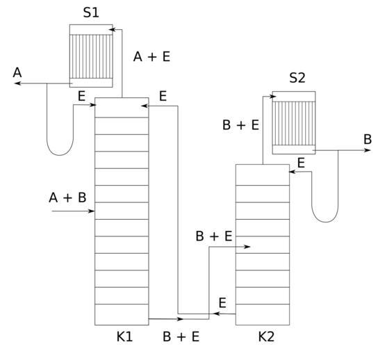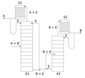 Keywords: Distil extract.svg en Extractive distillation “ schema pl Destylacja ekstrakcyjna - schemat own Joanna KoÅ›mider 2010-12-25 Cc-zero Continuous distillation columns