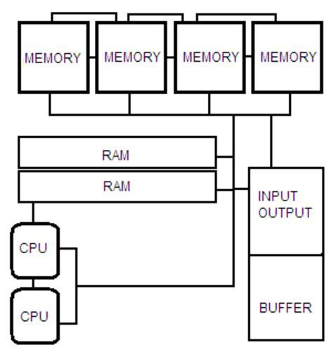 Keywords: Distribfaultredudance.PNG en A visual representation of the design logic behind a fault-tolerant computer hardware design Dual CPU's isolated with redundant memory redundant RAM and a buffer to store all incoming input for user error and all output for logical consistency and voting Own Logical Premise 2008-09-10 Computing |
