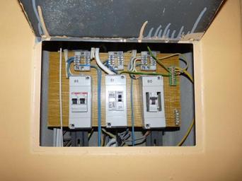 | Keywords: Distribution board in USSR apartment building after modernisation.JPG en Distribution board in USSR apartment building after modernisation Flat 81 got copper cable cause of increased power consuption So as power consumption depend on current voltage is constant it is need to put cable that pass increased current without heating ru Элект ический щит в ква ти ном доме советской пост ойки Из-за повышения мощности в ква ти у 81 установлен медный кабель Поскольку мощность зависит от силы тока нап яжение подаётся одно и то же необходим монтаж кабеля способного без пе ег ева выде жать п отекающий ток own Dmitry G 2009-09-24 thumb center Distribution boards |