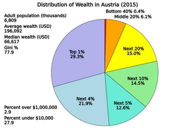 | Keywords: Distribution of Wealth in Austria.svg translate yes en Wealth shares of different percentile groups in Austria in 2015 Data from Credit Suisse http //publications credit-suisse com/tasks/render/file/index cfm fileid C26E3824-E868-56E0-CCA04D4BB9B9ADD5 Table 6-5 Page 149 2016-07-20 own Delphi234 other versions cc-zero Distribution of wealth Economic inequality SVG pie charts | ||||
