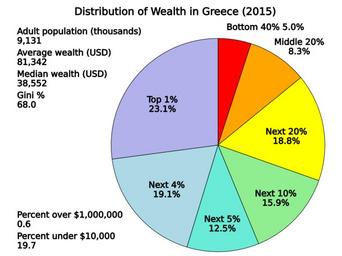 | Keywords: Distribution of Wealth in Greece.svg translate yes en Wealth shares of different percentile groups in Greece in 2015 Data from Credit Suisse http //publications credit-suisse com/tasks/render/file/index cfm fileid C26E3824-E868-56E0-CCA04D4BB9B9ADD5 Table 6-5 Page 149 2016-07-20 own Delphi234 other versions cc-zero Distribution of wealth Economic inequality SVG pie charts | ||||