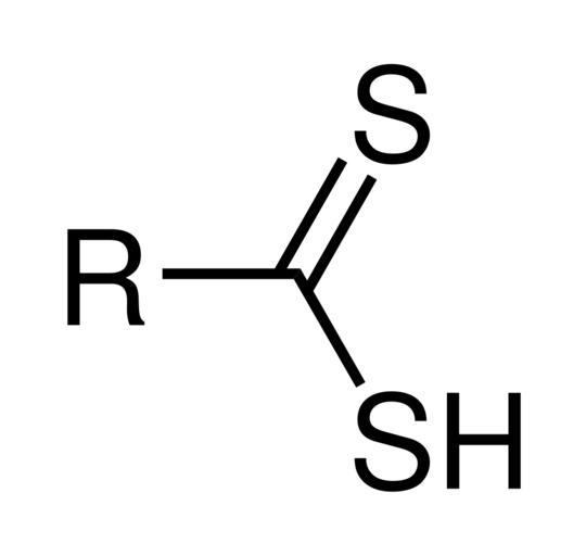 Keywords: Dithiocarboxylic acid general structure.svg General structure of dithiocarboxylic acid Own 2007-06-24 Calvero Dithiocarboxylic acids