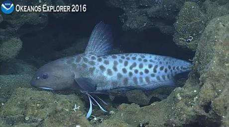 | Keywords: okeanos explorer okeanosexplorer noaa exploration ocean jellynose eel jellynoseeel credit: National Oceanic and Atmospheric Administration (NOAA) Dive 18: Esmerelda Bank, 08 May 2016 ROV Deep Discoverer has been deployed for Dive 18 on Esmerelda Bank. Today’s dive will start ~600m to explore for deep-sea coral communities (especially precious corals), and transit upslope to also survey bottomfish fishery habitat (starting at ~400m) up to ~250m. oceanexplorer.noaa.gov/okeanos/welcome.html While making observations at a depth of about 330 meters, one of the scientists excitely broke in and identified this as a type of Jellynose eel (genus guentherus, species katoi) which was first described as a new species in 2008, and said that this is only the second observation of a live specimen. This one looked to be about 40cm long. I see that someone has already uploaded a video: youtu.be/9Q_yiYKonQo credit: National Oceanic and Atmospheric Administration (NOAA) Dive 18: Esmerelda Bank, 08 May 2016 ROV Deep Discoverer has been deployed for Dive 18 on Esmerelda Bank. Today’s dive will start ~600m to explore for deep-sea coral communities (especially precious corals), and transit upslope to also survey bottomfish fishery habitat (starting at ~400m) up to ~250m. oceanexplorer.noaa.gov/okeanos/welcome.html While making observations at a depth of about 330 meters, one of the scientists excitely broke in and identified this as a type of Jellynose eel (genus guentherus, species katoi) which was first described as a new species in 2008, and said that this is only the second observation of a live specimen. This one looked to be about 40cm long. I see that someone has already uploaded a video: youtu.be/9Q_yiYKonQo |