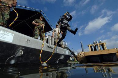 Keywords: Diver Step.jpg en An Army Diver performs a front step to enter the water 2008-05-13 US Federal Government US Federal Government PD-USGov Uploaded with UploadWizard United States Army Divers from the United States