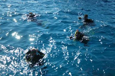 Keywords: divers ocean blue sea water salt water sun wave sparkle reflexes light reflections diving swim breathing apparatus turquoise