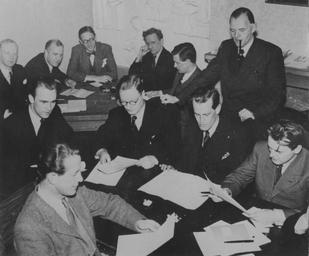 | Keywords: vårslipp vårslipp 2012 vårslipp2012 andre verdenskrig andreverdenskrig 2. verdenskrig 2verdenskrig flyktningeadministrasjon nordmenn i sverige under krigen nordmennisverigeunderkrigen people groupshot blackandwhite monochrome black and white Kurs for informasjonsoffiserer høsten 1944. Rundt det nærmeste bordet fra venstre: Øystein Hermandsen, Aksel Kielland, Alfred Skar, Halvard Røisland og Odd Hjort Sørensen. I bakgrunnen fra venstre: Arne Østvedt, Rolf Gerhardsen, Anders Buraas, Oddvar Røst, Kjell Krogvig og stående Leif Helberg. RA/PA-1209/Uc/65/1-2/Uten nummer Kurs for informasjonsoffiserer høsten 1944. Rundt det nærmeste bordet fra venstre: Øystein Hermandsen, Aksel Kielland, Alfred Skar, Halvard Røisland og Odd Hjort Sørensen. I bakgrunnen fra venstre: Arne Østvedt, Rolf Gerhardsen, Anders Buraas, Oddvar Røst, Kjell Krogvig og stående Leif Helberg. RA/PA-1209/Uc/65/1-2/Uten nummer |