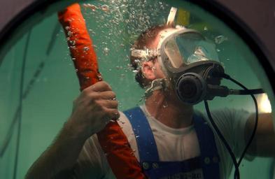 | Keywords: Diving training -h.jpg en 030124-N-6967M-233 PH1 Leland Comer's veins buldge in the cold water of the dive tank as he finishes his first surface supplied dive All Hands magazine photo by PH1 AW Shane T McCoy June 2003 pg 23 This photo was taken for but did not appear in the magazine http //www news navy mil/view_ahhsingle asp id 917 Shane T McCoy 2003-06 PD-USGov-Military-Navy Photographs by Shane T McCoy Underwater diver training Underwater diving life support and protection equipment Surface equipment for underwater diving Underwater diving techniques and processes Full face diving masks |