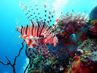 Keywords: diving underwater red fire fish underwater world fish toxic risk