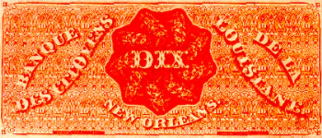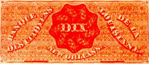 | Keywords: DixBanqueDesCitovens.png 10 dollar banknote Citizens Bank of Louisiana New Orleans 1860 French inscription reads DIX ; such notes are one suggested origin for the term Dixie to refer to the US South Note printed by the National Bank Note Company for the Citizen's Bank of Louisiana via Louisiana State Museum website http //lsm crt state la us/cabildo/cab9a htm 1860 National Bank Note Company/Citizen's Bank of Louisiana PD-Old Similar note File Royal Gun Shop Dixie Note jpg 1860 in New Orleans 10 United States dollar banknotes French language Original upload log wikitable - - 2008-07-26 17 11 15 350 × 150 64433 bytes Infrogmation <nowiki> 10 dollar banknote Citizens Bank of Louisiana New Orleans 1860 French inscription reads DIX ; such notes are one suggested origin for the term Dixie to refer to the US South Note printed by the National Bank No</nowiki> |