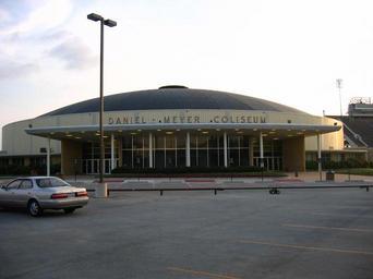 Keywords: DMCFront.jpg A wide view of the front door of Daniel Meyer Coliseum at Texas Christian University Own 15-May-07 General125 Daniel-Meyer Coliseum
